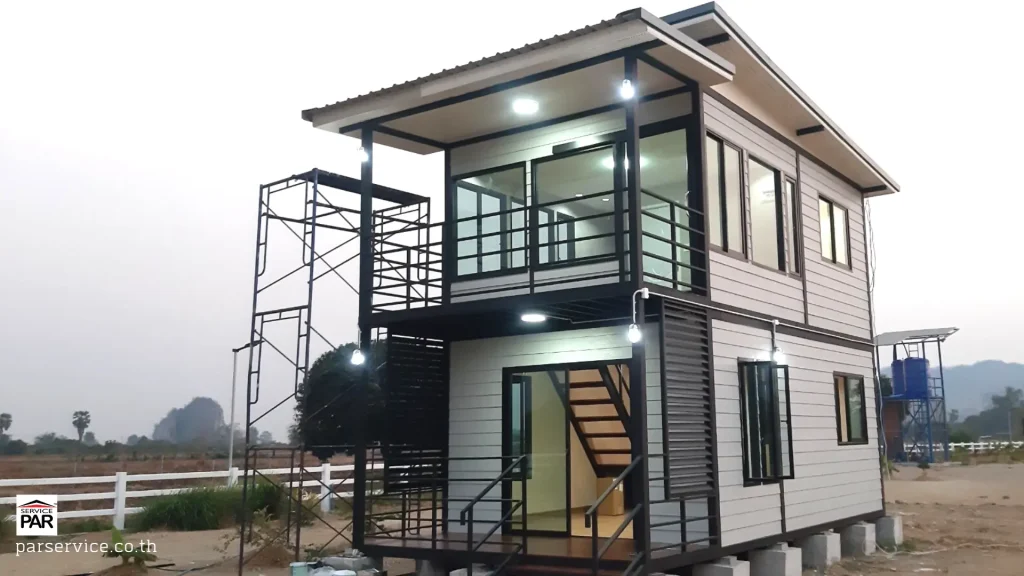 บ้านน็อคดาวน์ 2 ชั้น ทรงโมเดิร์น รุ่น M20 ติดตั้งที่ จ.นครนายก